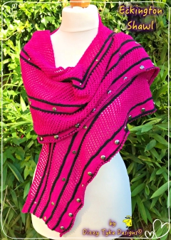 This lace Weight shawl knitted in one piece uses short rows to create distinctive shaping. Open lacework is interspersed with bands containing beads in 3 sizes.